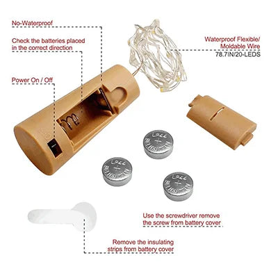 - Included Components: 10 pack of Cork Lights with Batteries included